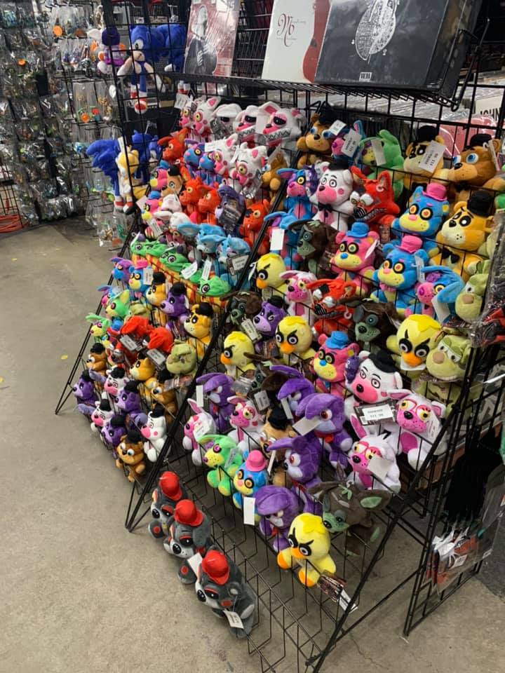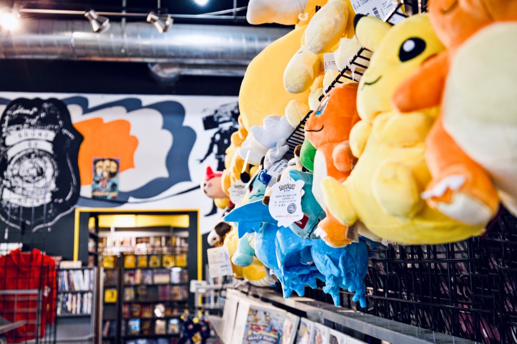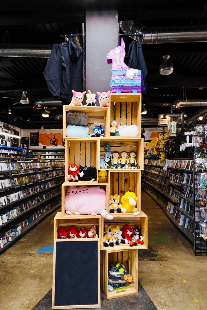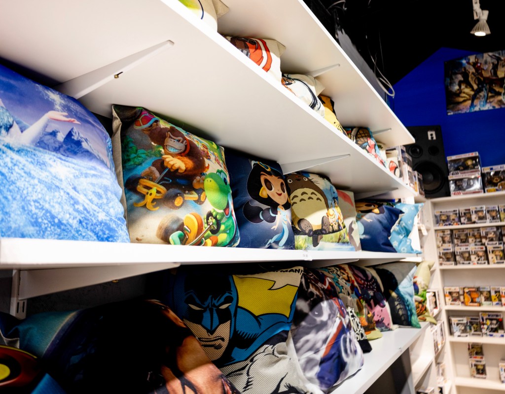 Don’t forget we have all sorts of fun accessories for you and for your house, too! We have bins full of buttons and we’re constantly getting new designs in – and we take requests! Keychains, plushies, stickers, t-shirts & hoodies, posters, and pillows are just some of the other things we have on the shelves. We never know what cool stuff we’re going to find next!